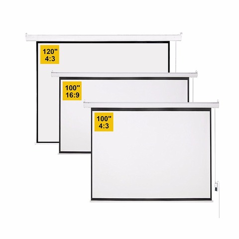 Tela de projeção elétrica fixada na parede, 150 polegadas, tira de vídeo, formato da tela 4:3, fibra de vidro